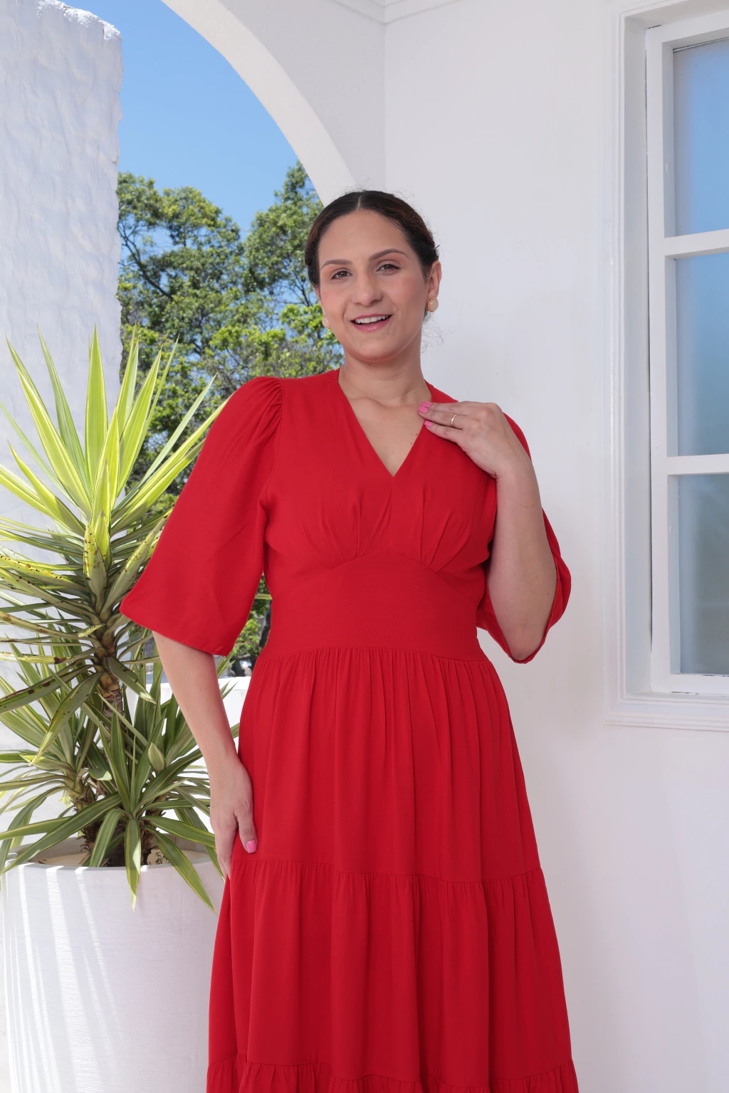 O vestido Micaela chegou com tudo. Ele é uma das peças da que veio para inovar nosso guarda roupas. Com o tecido em viscolinho estampado (super charmoso), o comprimento desse modelo é midi, elastex costas, com mangas médias e largas, leve decote V e acinturado.